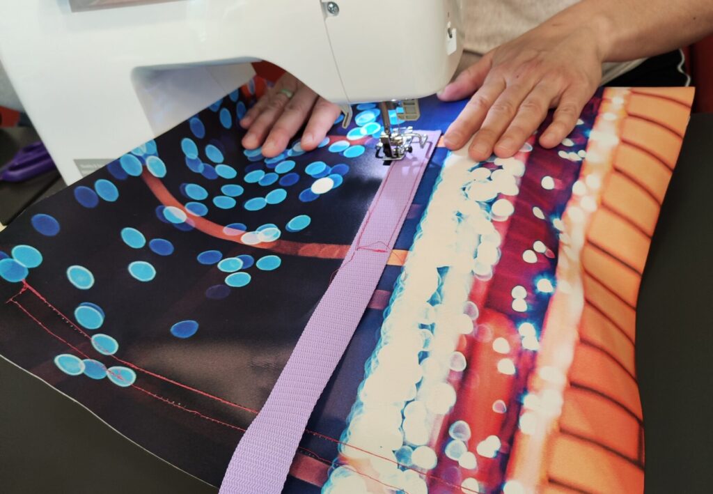 Die Upcycling-Nähworkshops sind speziell für Events, Museen, Firmen und Schulen konzipiert. In diesen Kursen wird Nachhaltigkeit mit Kreativität verbunden: Verwendet werden alte Werbebanner aus PVC, Mesh, Textil und Fahnen, die ursprünglich für Ausstellungen dienten und nun sinnvoll weiterverwendet werden, statt im Müll zu landen.