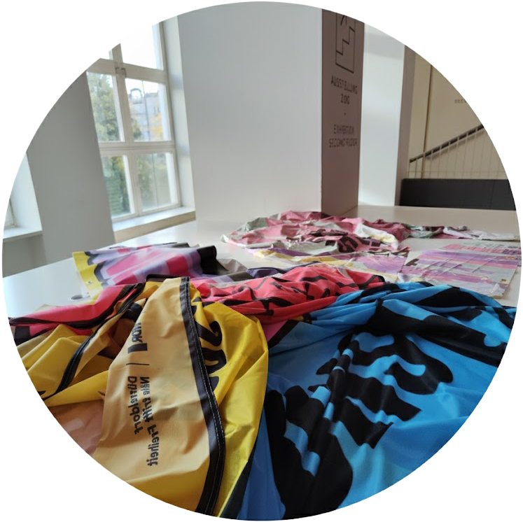 Upcycling-Workshops Für Organisationen, Museen, Unternehmen, Veranstaltungen und andere Orte, die wiederverwendbare Werbebanner zur Verfügung haben. Kontaktieren Sie mich, um die Eignung des Materials zu prüfen und ein individuelles Nähprojekt mit speziell für den verwendeten Bannertyp erstellten Schnittmustern zu entwickeln.