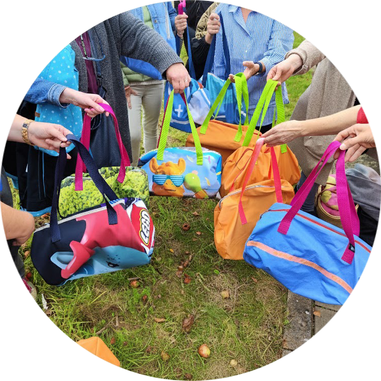 Die Upcycling-Nähworkshops sind speziell für Events, Museen, Firmen und Schulen konzipiert. In diesen Kursen wird Nachhaltigkeit mit Kreativität verbunden: Verwendet werden alte Werbebanner aus PVC, Mesh, Textil und Fahnen, die ursprünglich für Ausstellungen dienten und nun sinnvoll weiterverwendet werden, statt im Müll zu landen.